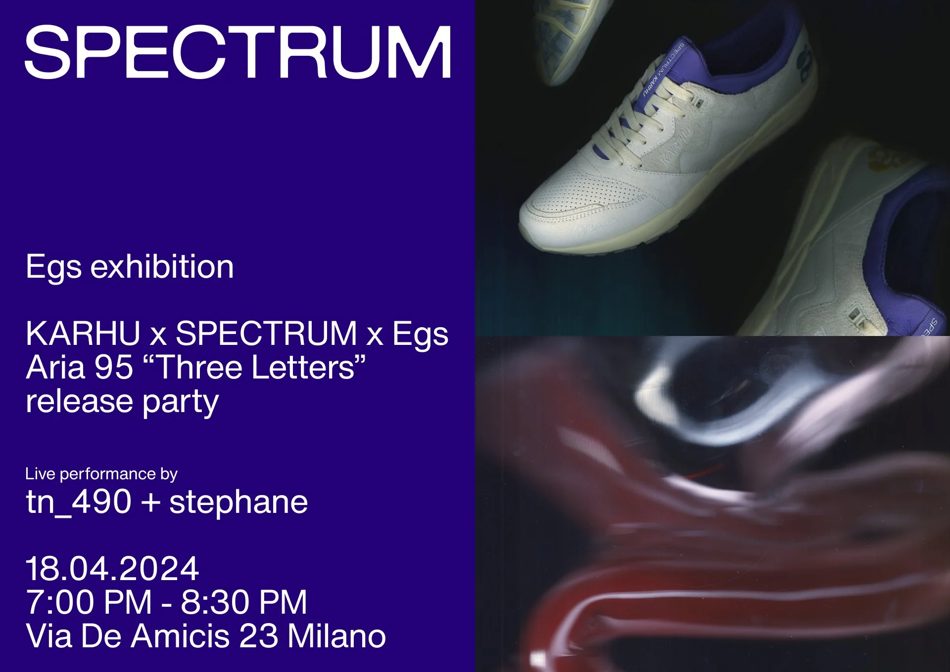 To mark the launch of the Italian-Finnish collaboration between SPECTRUM, KARHU, and Egs, the Finnish artist has created a series of glass sculptures in Murano. The exhibition and the release of the sneakers will be celebrated on Thursday, April 18th, from 7:00 PM to 8:30 PM, featuring an in-store aperitivo and a live performance by tn_490 + stephane.