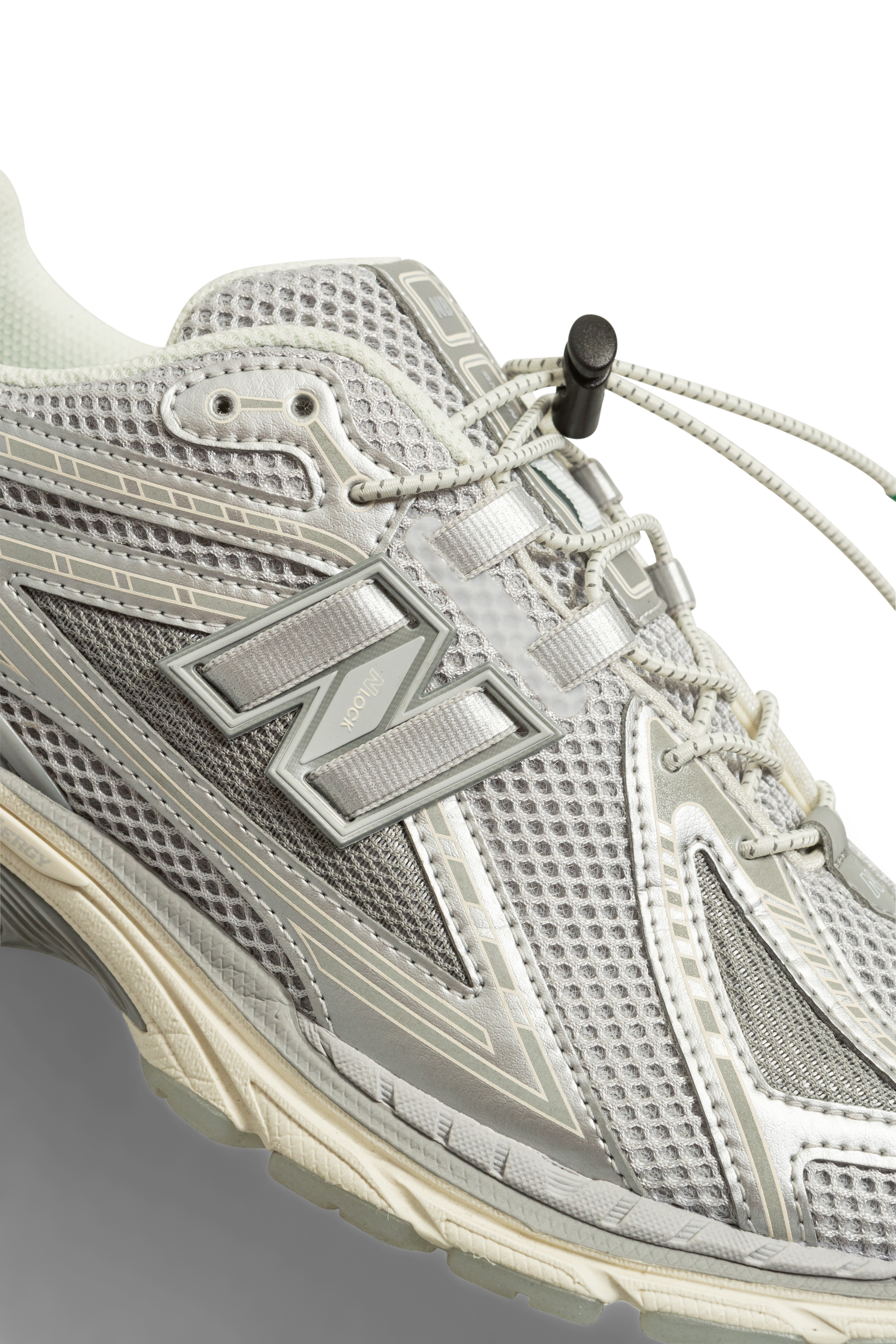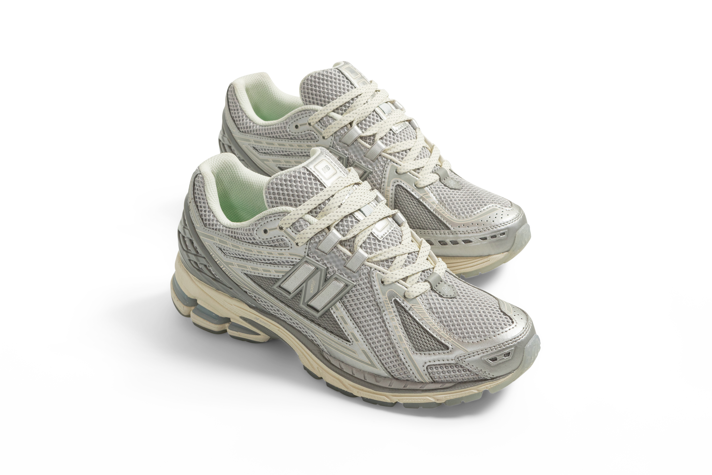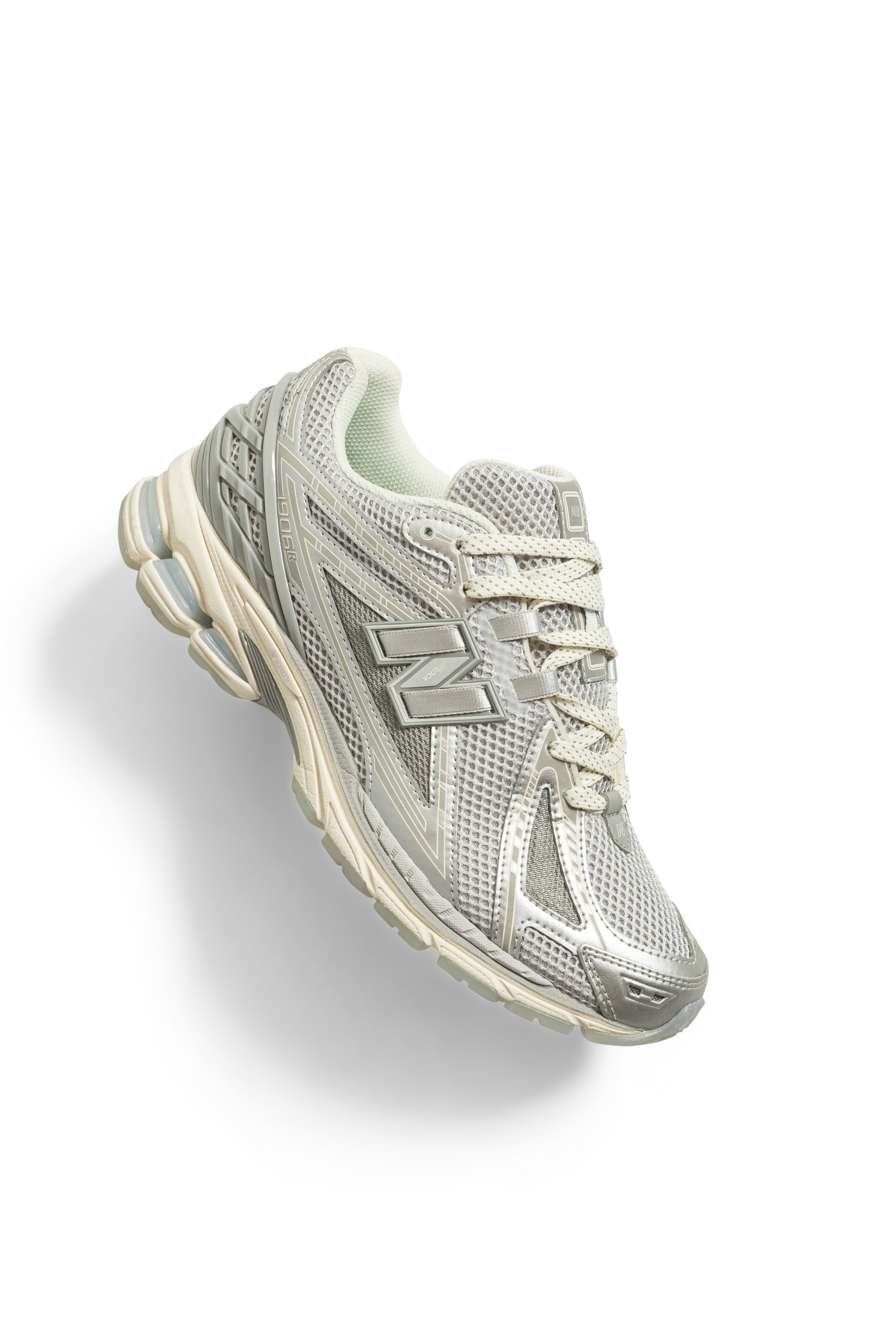 Drawing from the model’s noughties legacy, the 1906RUP features a full silver upper with the recognisable 1906 motif—normally embossed into the panels—printed with a reflective finish revealed under changing light. This sits atop a base of double-layered mesh with a fully reflective underlay. The midsole—finished in soft white—is accented with a custom painted section at the forefoot which alters the shoe’s proportions. The N-DURANCE rubber outsole and springy N-ERGY pods are both finished in a translucent “Grey Ice” finish.