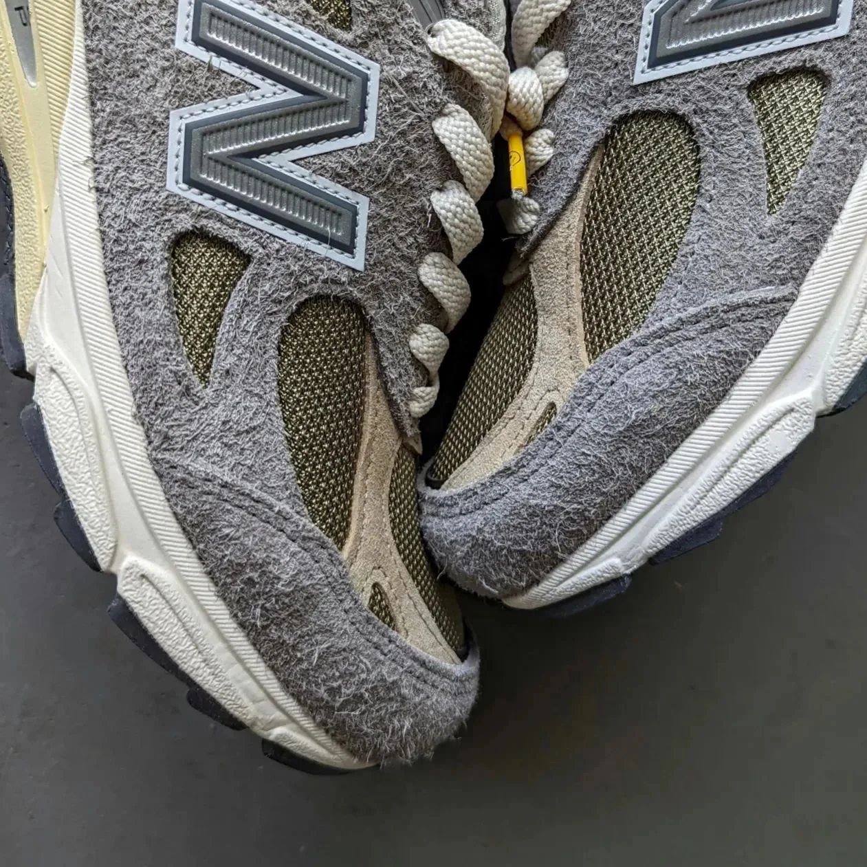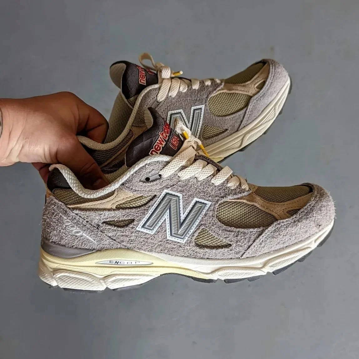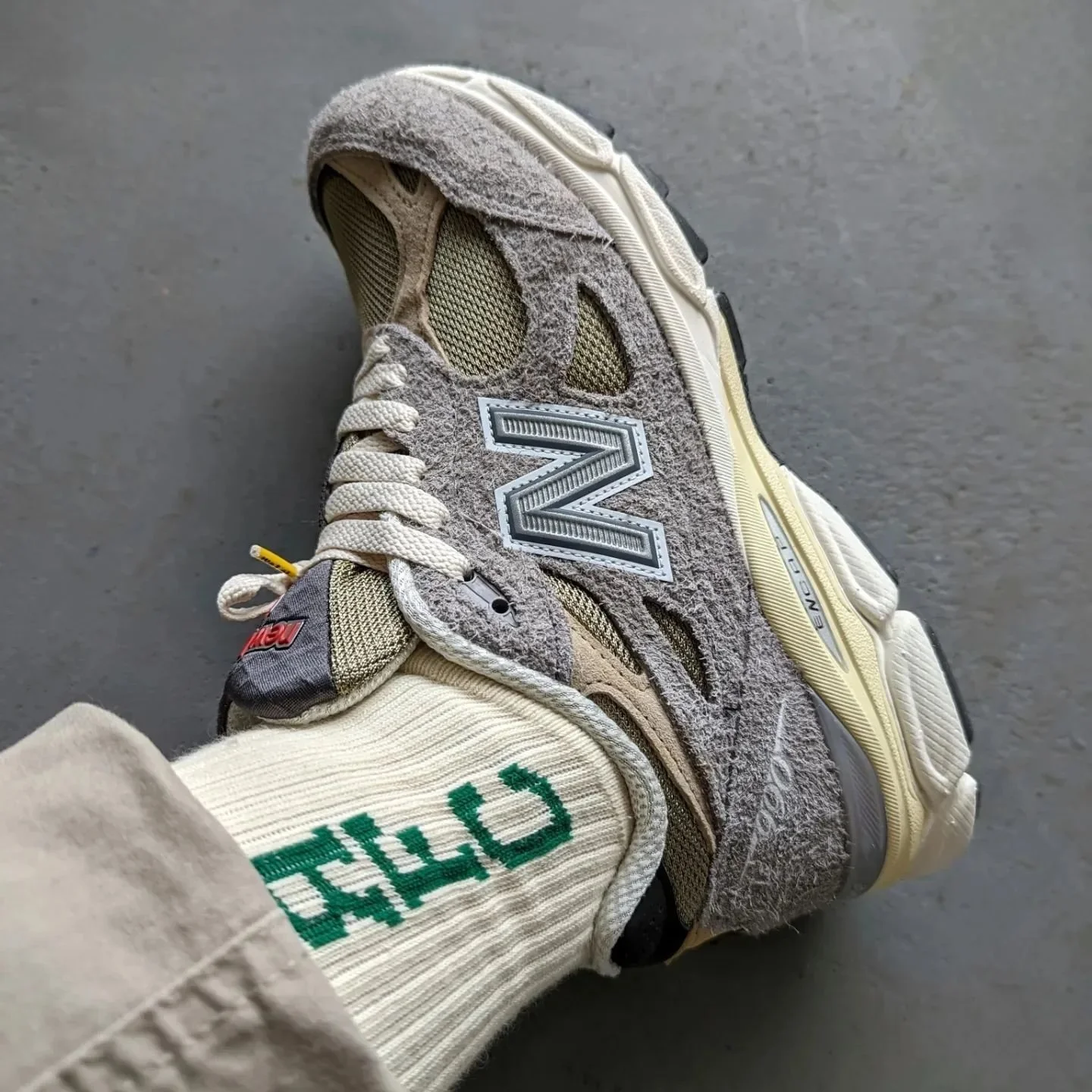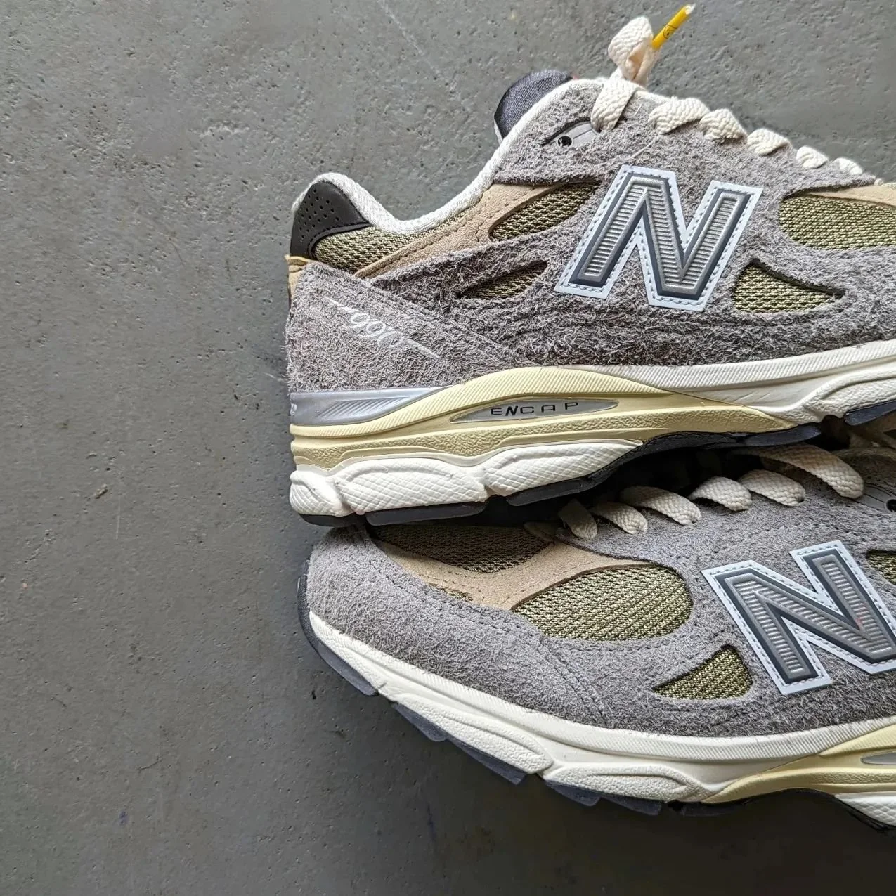 Materials: the grey suede that goes across the upper is a long, soft hairy suede that is similar to what is used on the Salehe 2002r. I will mention that the grey suede used on the v3 is much thicker than what was used on the v1. Where the 3m usually has been replaced with this soft, tan suede that has a nice color change while moving your finger across it. Then the rest of the sneaker has a green mesh, that is similar to what you normally see on a 990v3. My favorite touch on this sneaker is the little red NB logo on the back heel. Overall in terms of materials, I was very impressed with the quality.