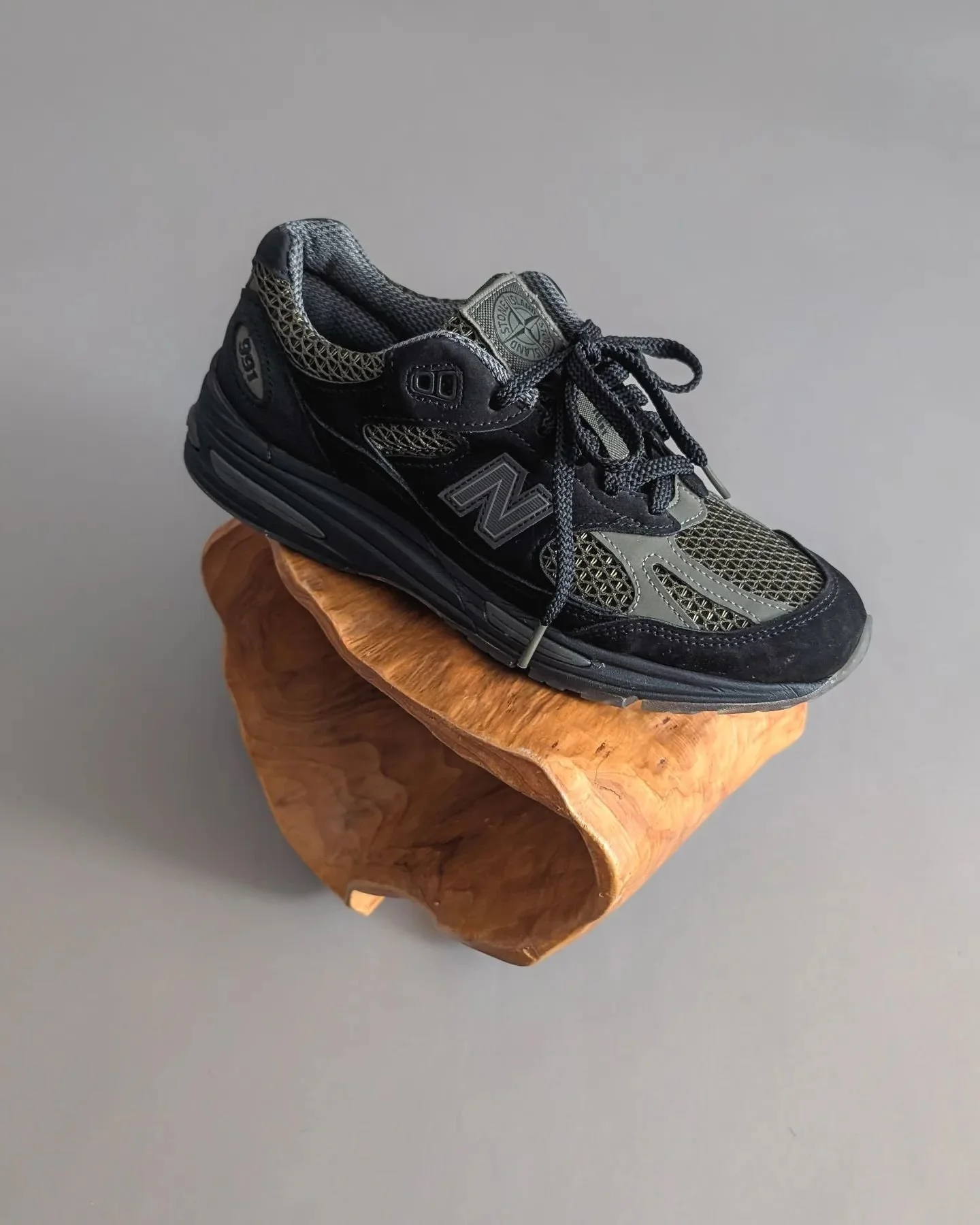 Materials: Starting with the mesh, it has a diamond pattern that is split in half forming 2 triangles and runs t/o the entire upper in a dark š« shade. As for the paneling, wrapping around the toe box & on the midfoot, is a soft, black nubuck with a slight hue of green sprinkled in. Also found on the midfoot is a 3M N logo in that same black olive shade. Moving to the back heel, there's a rubbery (I think it's a rough sueded) panel w/ a ā cutout with 991 branding & behind that is an embroidered upside-down triangle with a V2 logo inside it. Jumping to the bottom of the tongue is a 3M hit, followed by some more mesh & half-way thru is a NB logo on an olive patch that finishes off with a Stone Island patch at the top of the tongue. Moving to the sockliner, it has an olive green kevlar aesthetic (not literally), but it feels pretty comfy & soft on foot. && lastly, branding... on the insole you'll find a SI š§ & also beneath the clear outsole, is the last SI š§ logo Overall, these look very subtle at first, but the more you look at them, you can tell they really went all out and made a pretty awesome design.