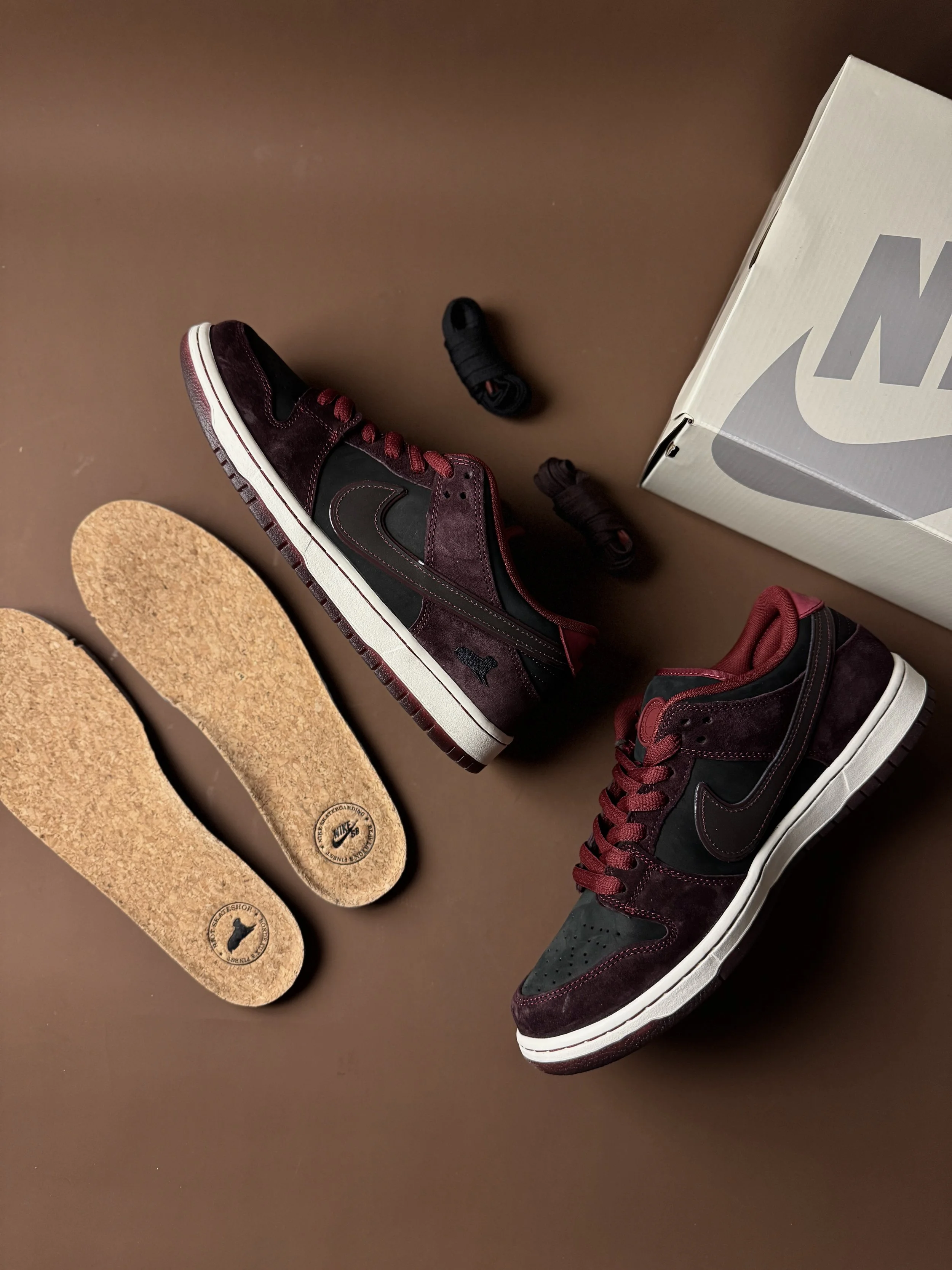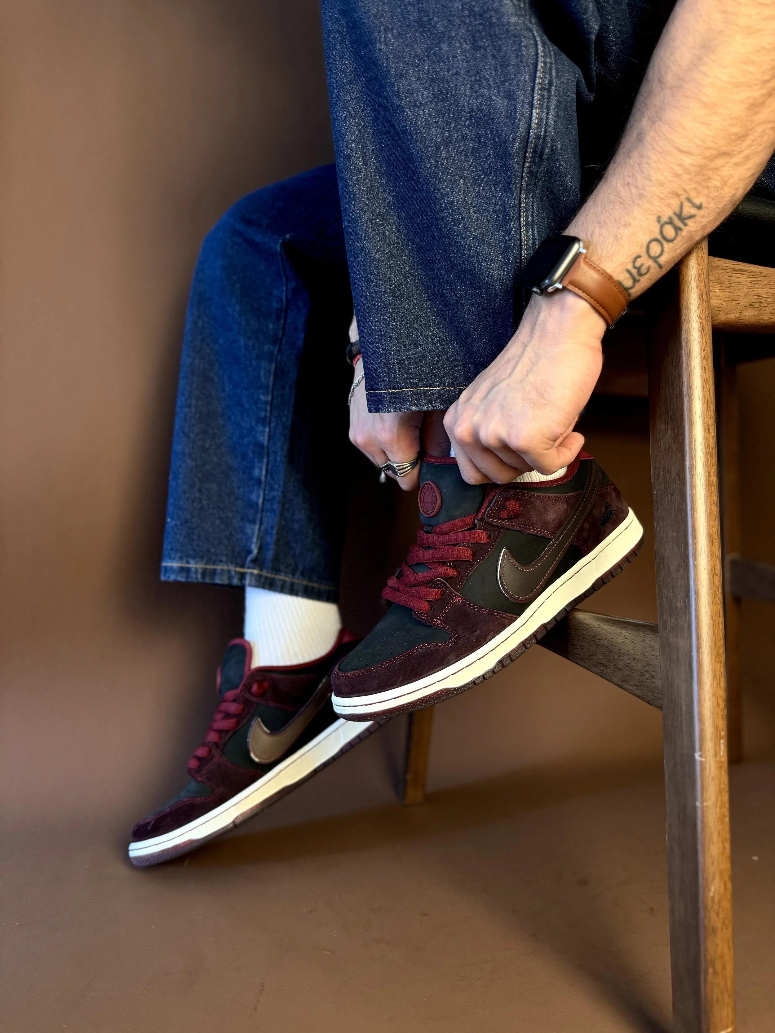 The Riot Skateshop x Nike SB Dunk Low is a sneaker that tells a story—literally. Inspired by the deep wine culture of Bordeaux, France (where Riot Skateshop is based), this Dunk is dripping in rich, earthy tones: Mahogany, Dark Beetroot, Team Red, Sail, and Night Maroon. Think of it as a Bordeaux bottle for your feet.